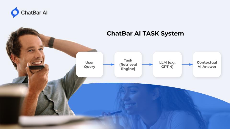 ChatBar AI uses a proprietary retrieval system called TASK to provide: